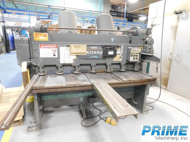 "Cincinnati 1406-R 3/16 x 6' Mechanical Shear for sale by Prime Machinery. Trusted seller offering a used power squaring shear with a 6' blade length and maximum thickness of 3/16". Features include a squaring arm, front support arm, and a 42" back gauge. Model: 1406R. Serial Number: 39215. Reliable and professional equipment ready for use. Don't miss out on this opportunity. Visit us today!"
