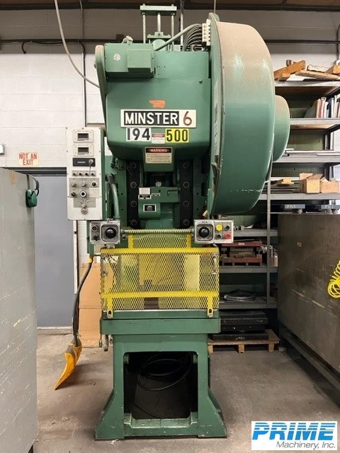 MINSTER Super Speed OBS 60 ton OBI press, model 6SS-FB. This piece of machinery is for pressing, equipped with a flywheel and double crank. Key specs include tonnage of 60 T, stroke of 4", bed width of 21" and length of 32". Features an air clutch and provides 90 - 180 strokes per minute. Operates at a floor to bed height of 33.25" and offers a slide adjustment of 2.75". Excellent for all your pressing needs!