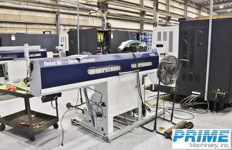 2020 EDGE TECHNOLOGIES REBEL 80 SERVO: used, hydraulic/mechanical bar un-loader with 80 mm cap, extended features, and immediate availability.