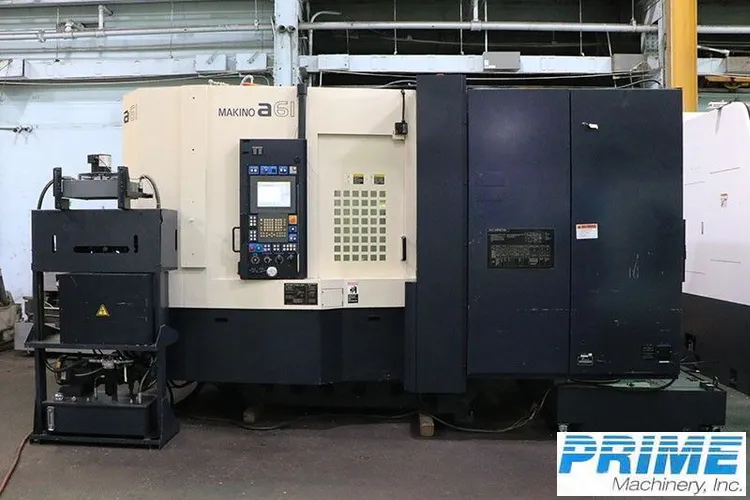 Makino A-61 CNC Horizontal Machining Center (2005, used) with Professional 5 Control, high-power spindle, and full 4th-axis. Includes chiller, chip conveyor. See in NJ warehouse.