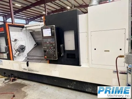 2014 MAZAK QTN-350MSY universal CNC lathe in used condition. Features 12" main spindle chuck, max swing of 29.5", 4-axis with Mazatrol Matrix Nexus 2, 40 HP main spindle motor, 12 tools, and equipped with coolant thru spindle and chip conveyor.