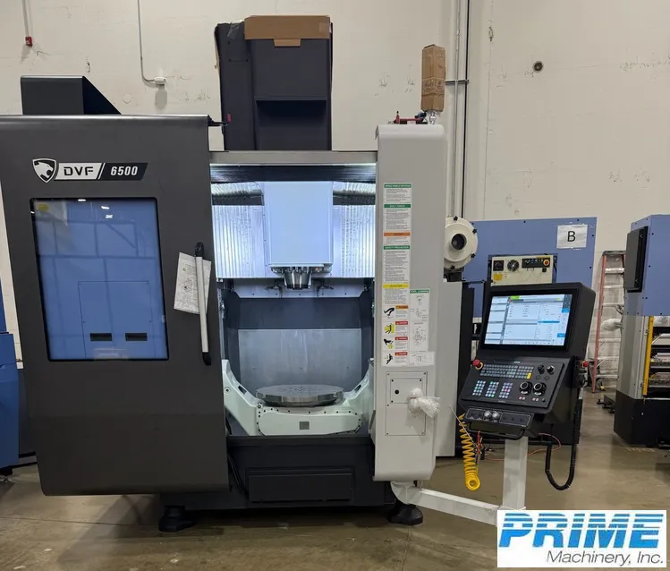 2024 Doosan DVF 6500 5-Axis Machining Center. Under 1,000 cutting hours, equipped with Siemens Sinumerik One Control, 18K Spindle, 60-tool ATC, spindle oil chiller, and coolant chiller. Perfect for precise machining of complex parts