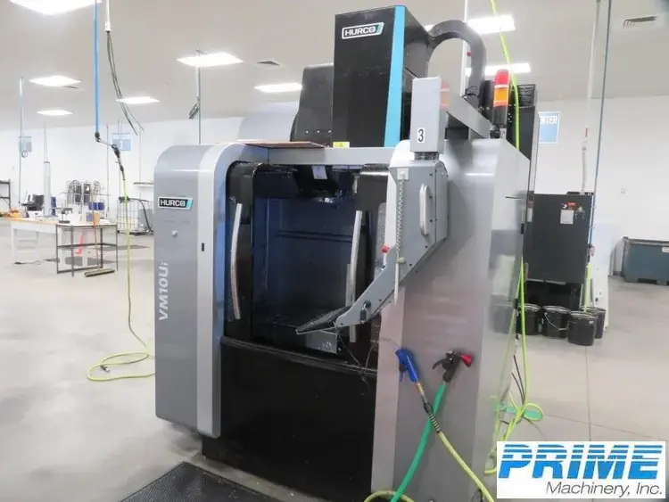HURCO VM10UI 5-axis machining center. Specs: Travel X21"/Y16"/Z19", 15HP spindle at 12,000 RPM, CAT-40 taper, and 20-tool capacity. Equipped with Hurco WinMax software for advanced machining functionalities.