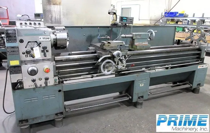 20"/27" x 100" Fortune Lathe, Model S20100G, 1993. Swing: 27" in gap, 20" over bed. 100" between centers. Equipped with DRO, 10HP motor, 3-jaw chuck, steady rest, and more. Ideal for precision threading. Approx. weight: 6,000 lbs. Located in NJ.