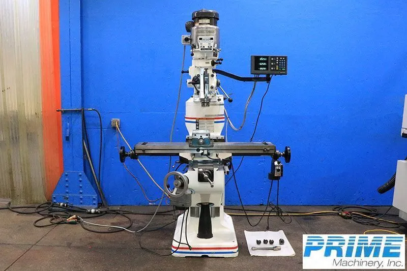 Bridgeport Series I Vertical Milling Machine, 2000. Equipped with AcuRite digital readout, servo power feeds, and Bijur lubrication. Features 9"x48" table, variable speed 60-4,200 RPM, and a 2HP spindle motor.